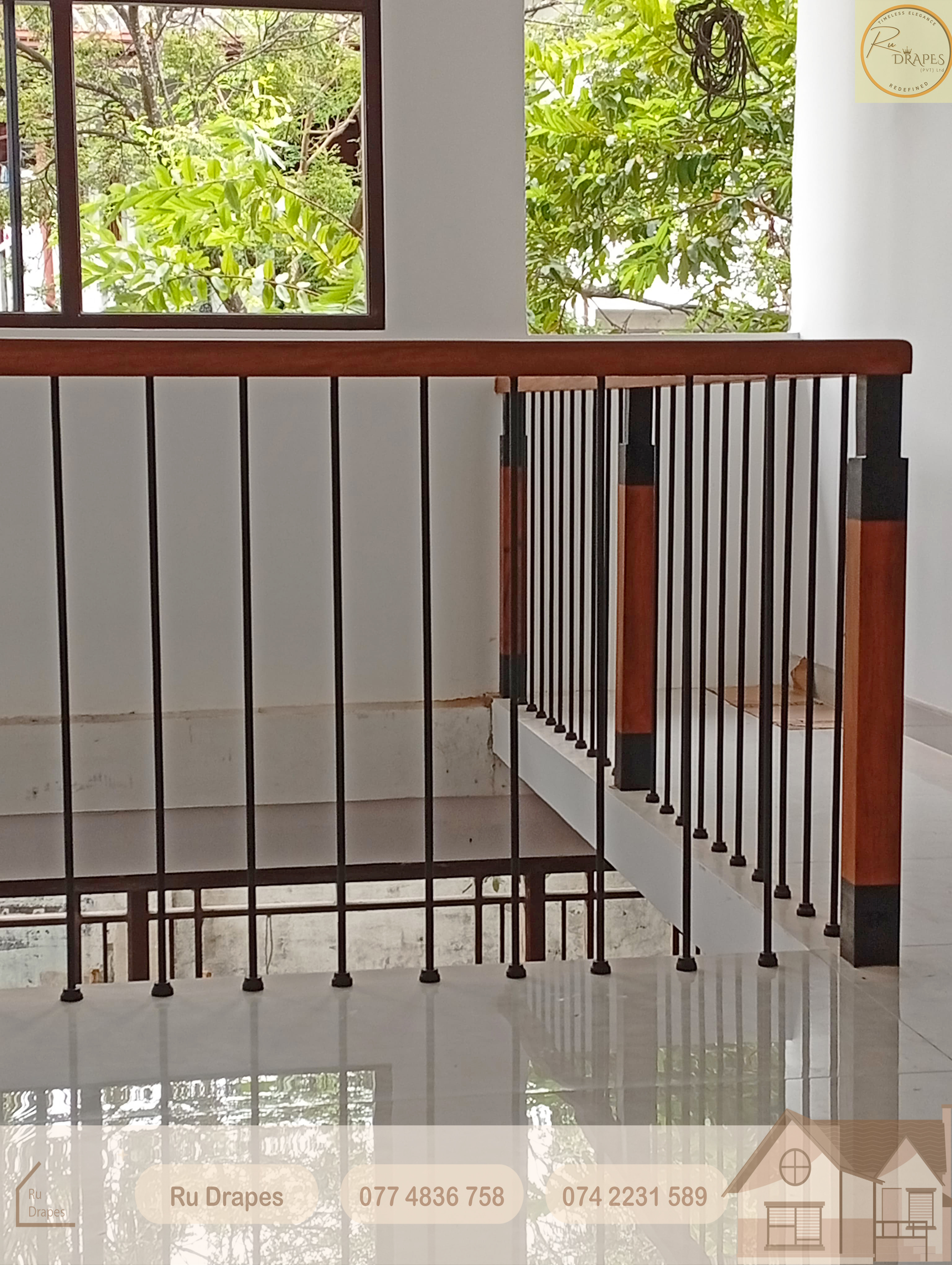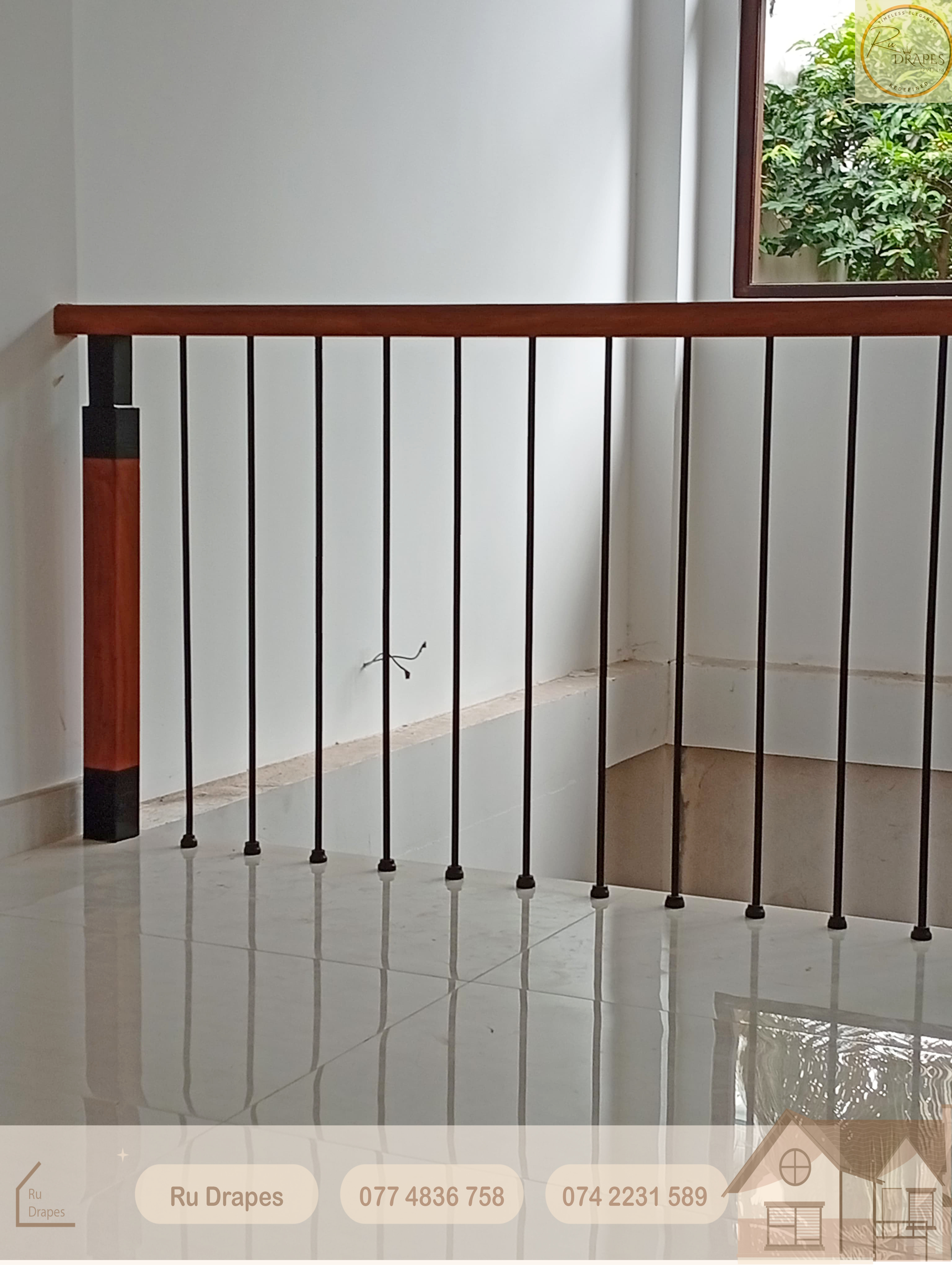 This project highlights an elegant staircase railing design that combines natural wooden handrails with sturdy vertical metal balusters for a perfect balance of modernity and warmth. The wooden top rail offers a smooth and comfortable grip, while the sleek black metal balusters provide both structural support and visual contrast.