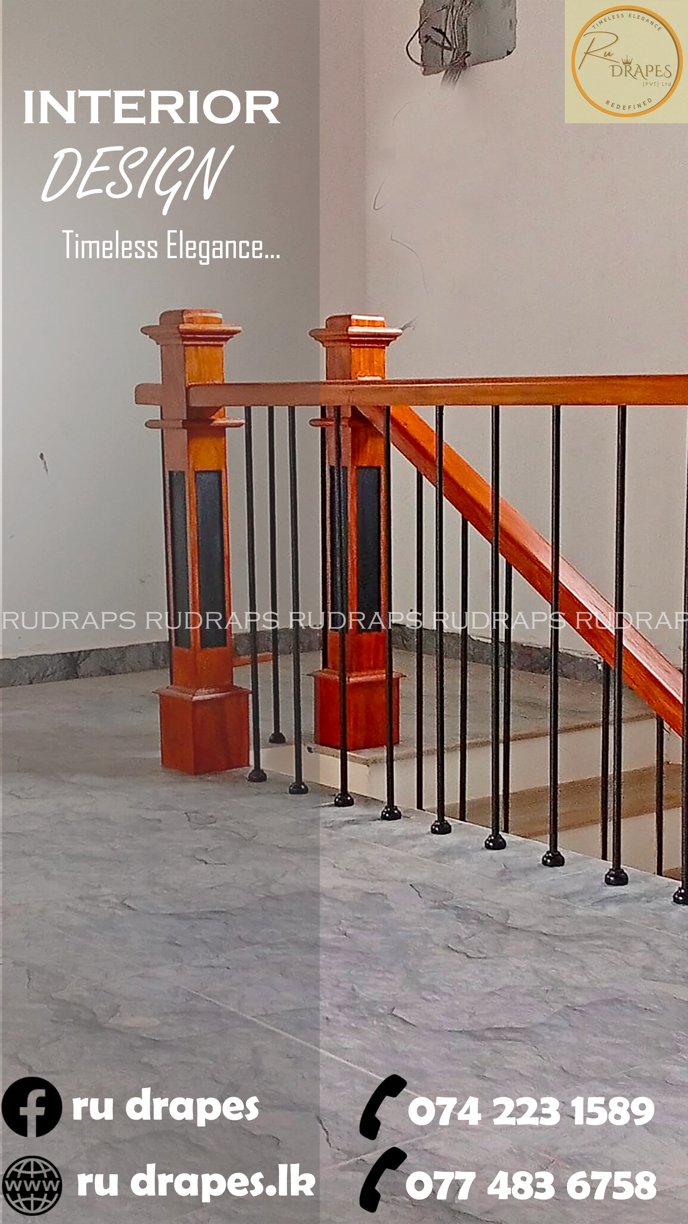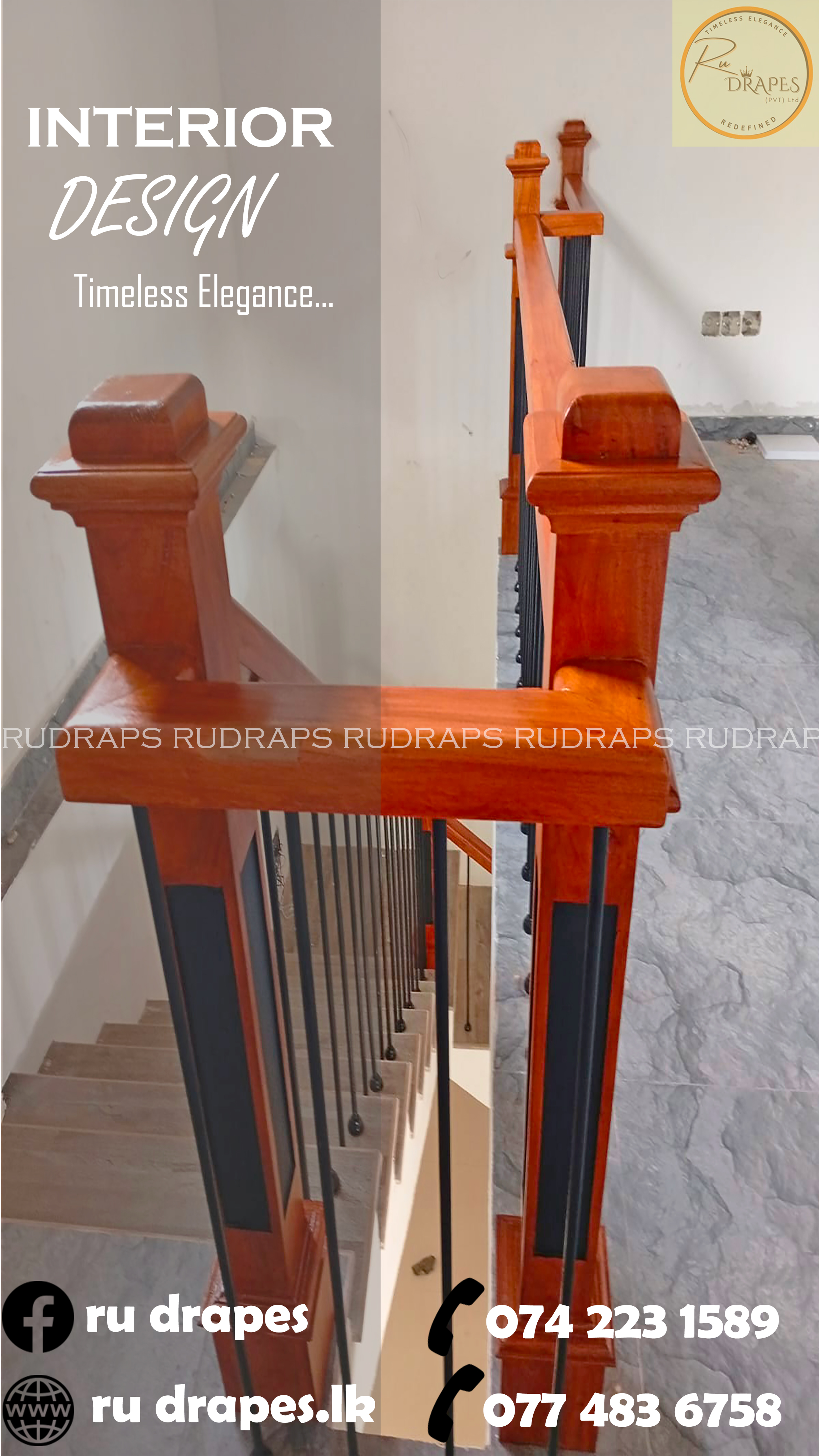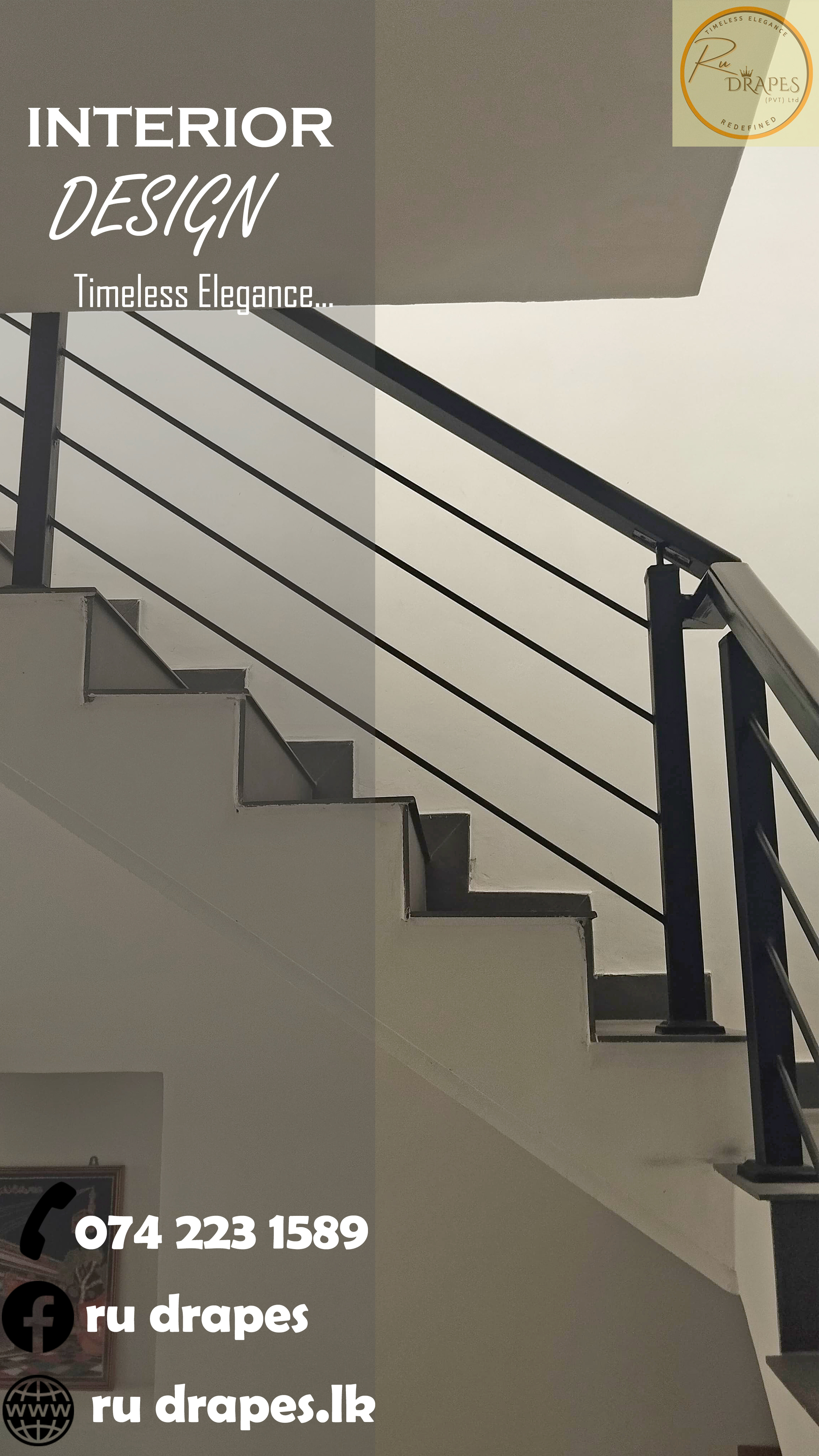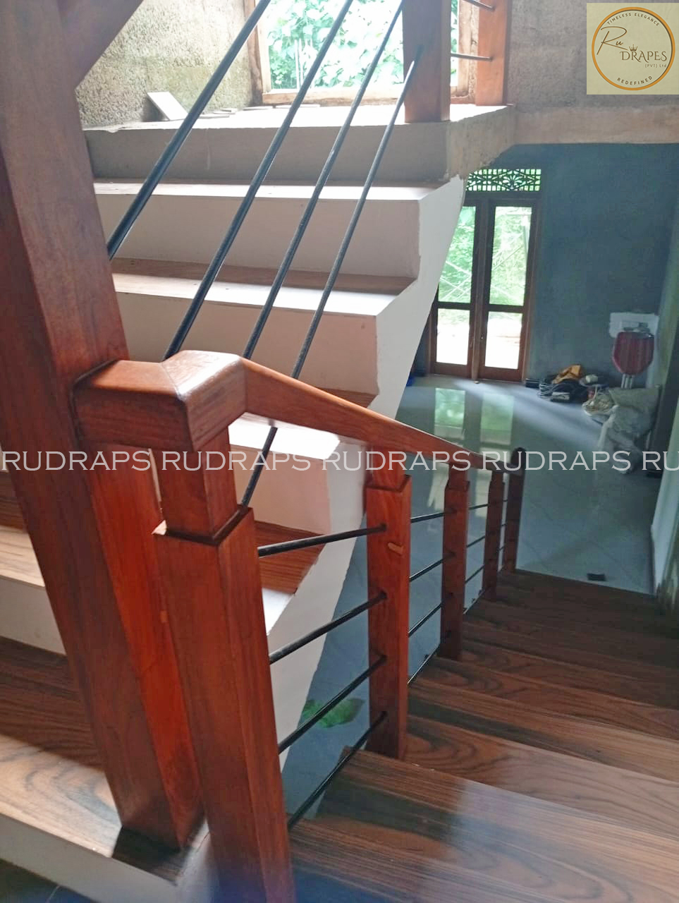 This project presents a minimalist staircase railing design that combines warm wooden handrails and newel posts with sleek vertical black metal balusters. The design emphasizes simplicity, functionality, and visual openness, making it ideal for modern residential interiors.