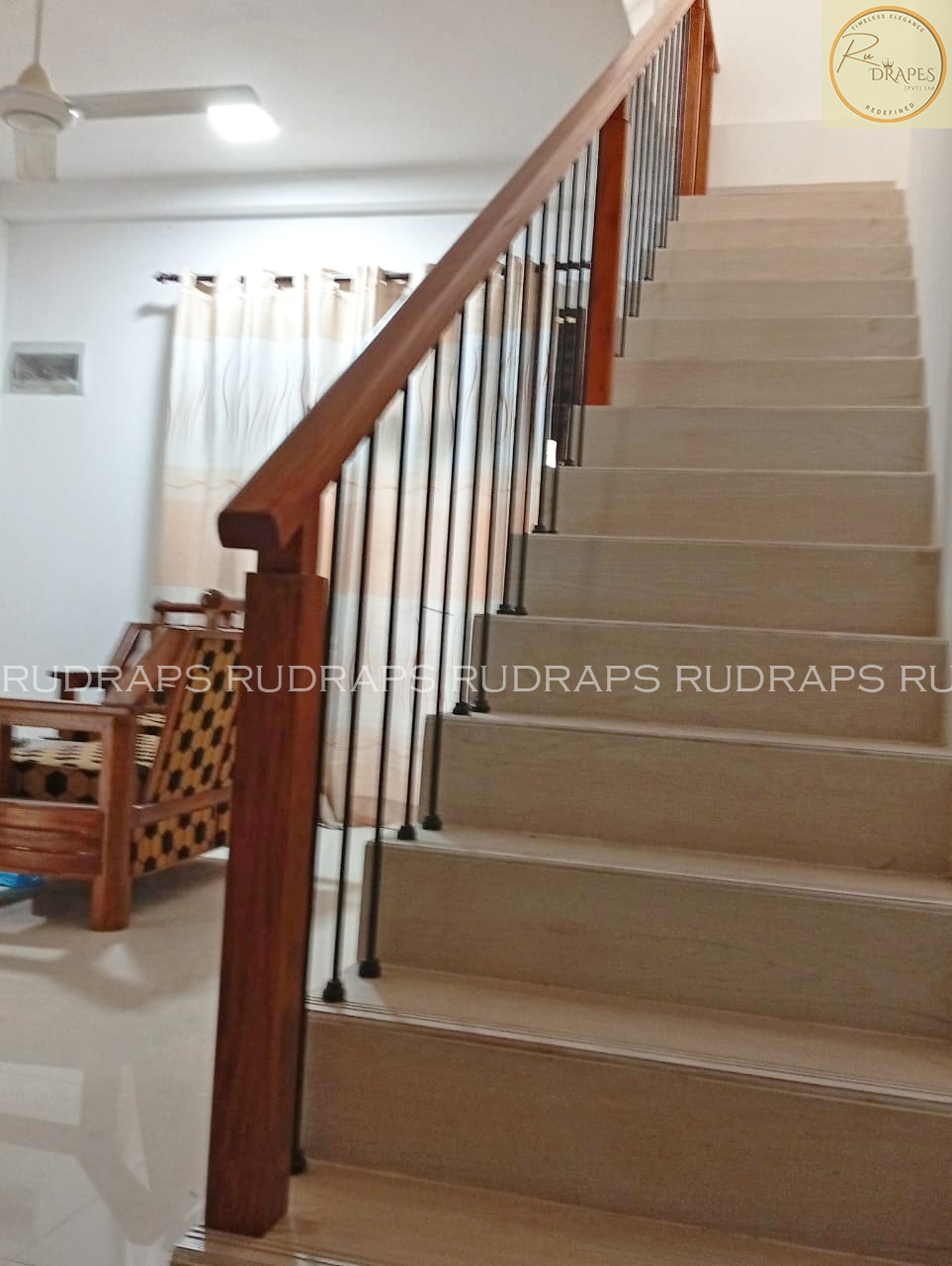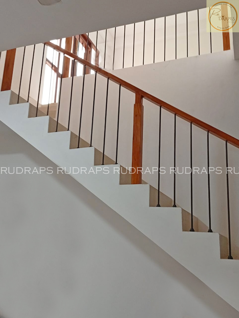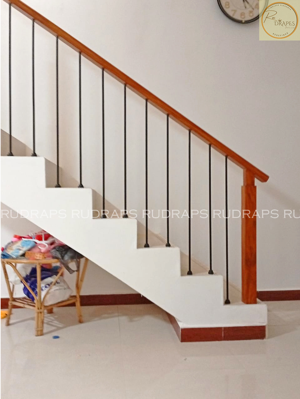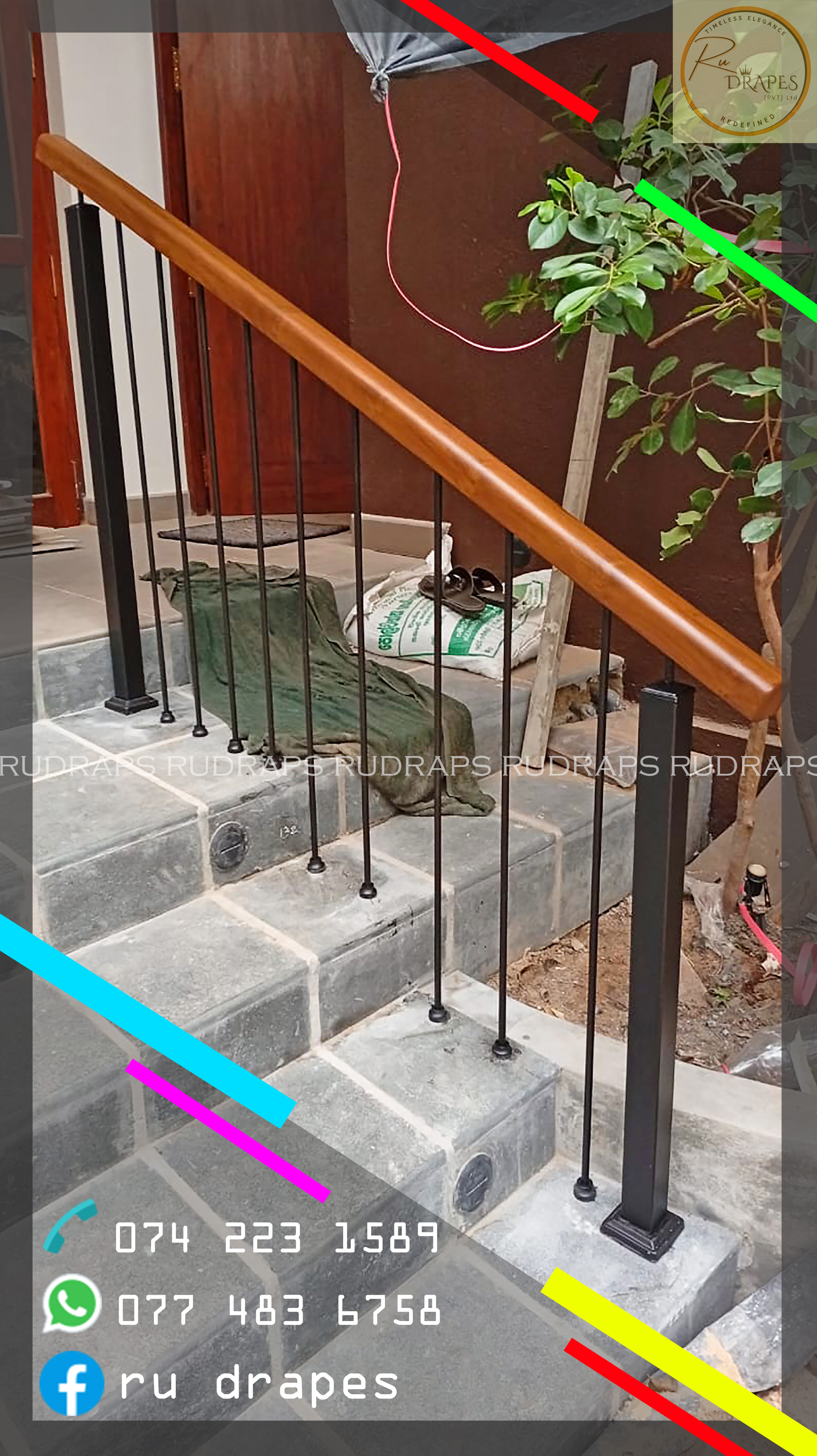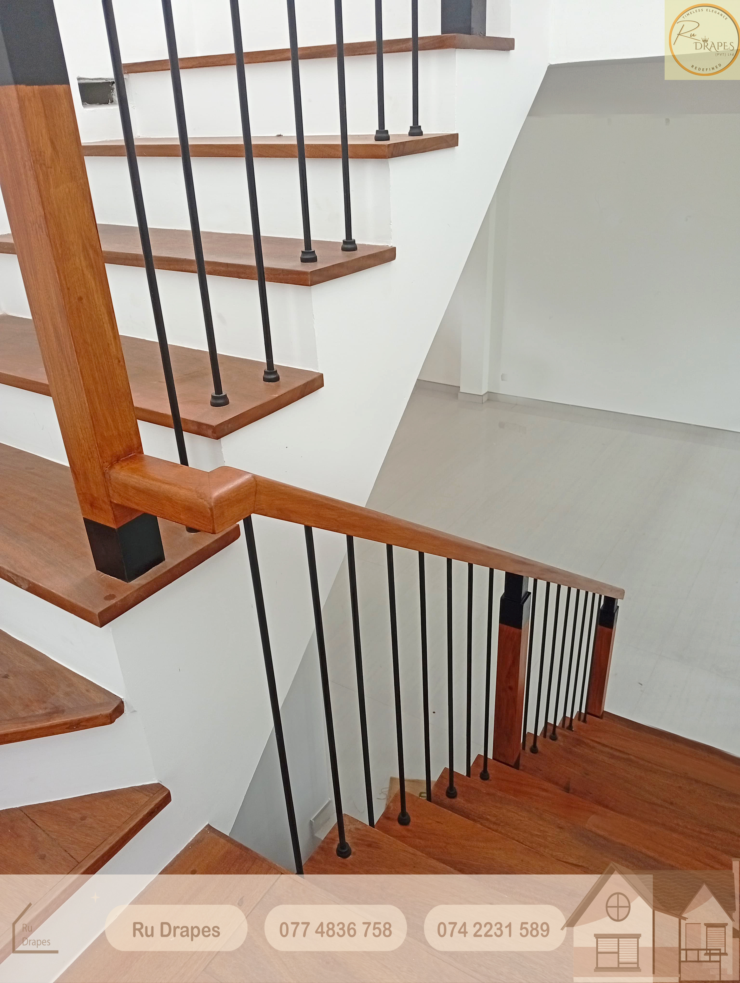 This project highlights an elegant staircase railing design that combines natural wooden handrails with sturdy vertical metal balusters for a perfect balance of modernity and warmth. The wooden top rail offers a smooth and comfortable grip, while the sleek black metal balusters provide both structural support and visual contrast.