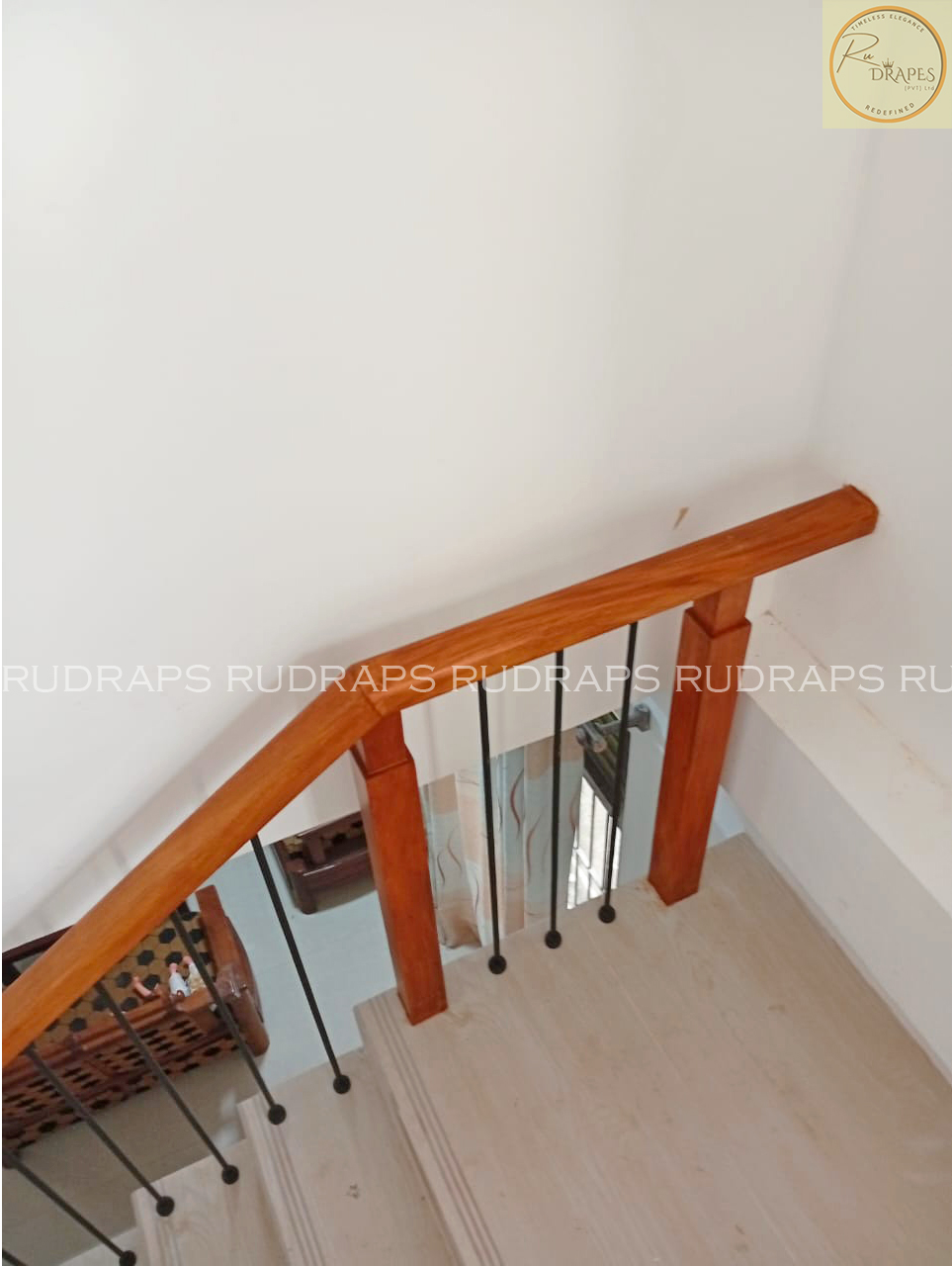 This project presents a minimalist staircase railing design that combines warm wooden handrails and newel posts with sleek vertical black metal balusters. The design emphasizes simplicity, functionality, and visual openness, making it ideal for modern residential interiors.