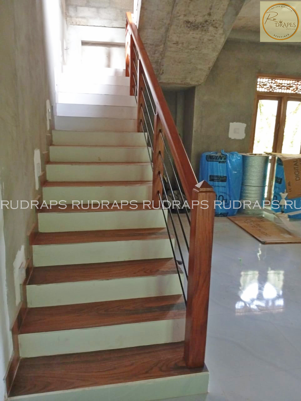 08.Elegant Stair Railing with Wooden Handrail and Metal Balusters.